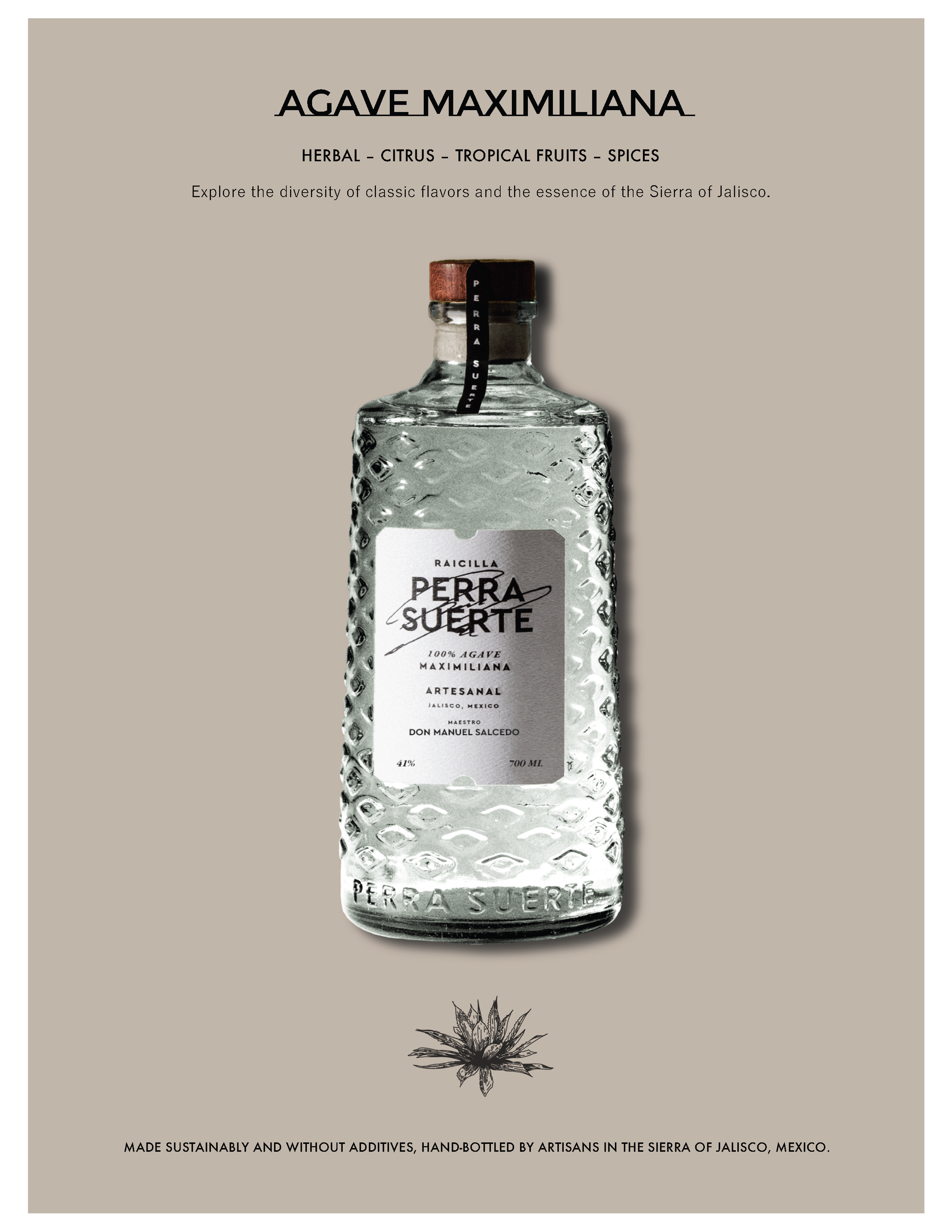 Raicilla Perra Suerte, 100% Maximiliana Agave, has a translucent appearance.